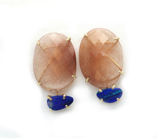 Empire Tourmalated Quartz and Australian Opal Drop Earrings