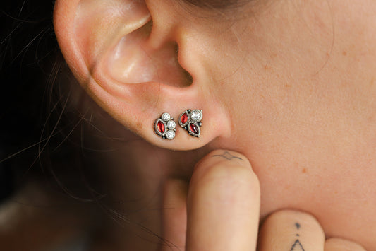 Edith Tourmalated Quartz, Garnet, Spinel and Amethyst Stud Earrings