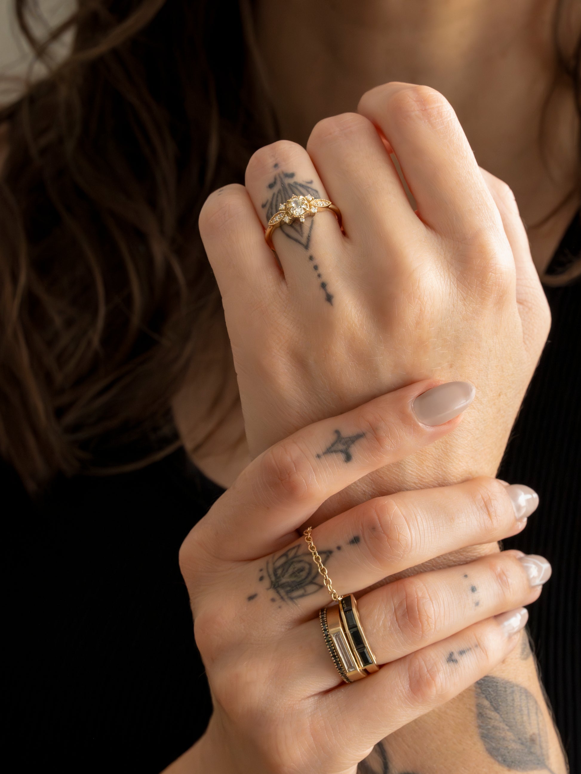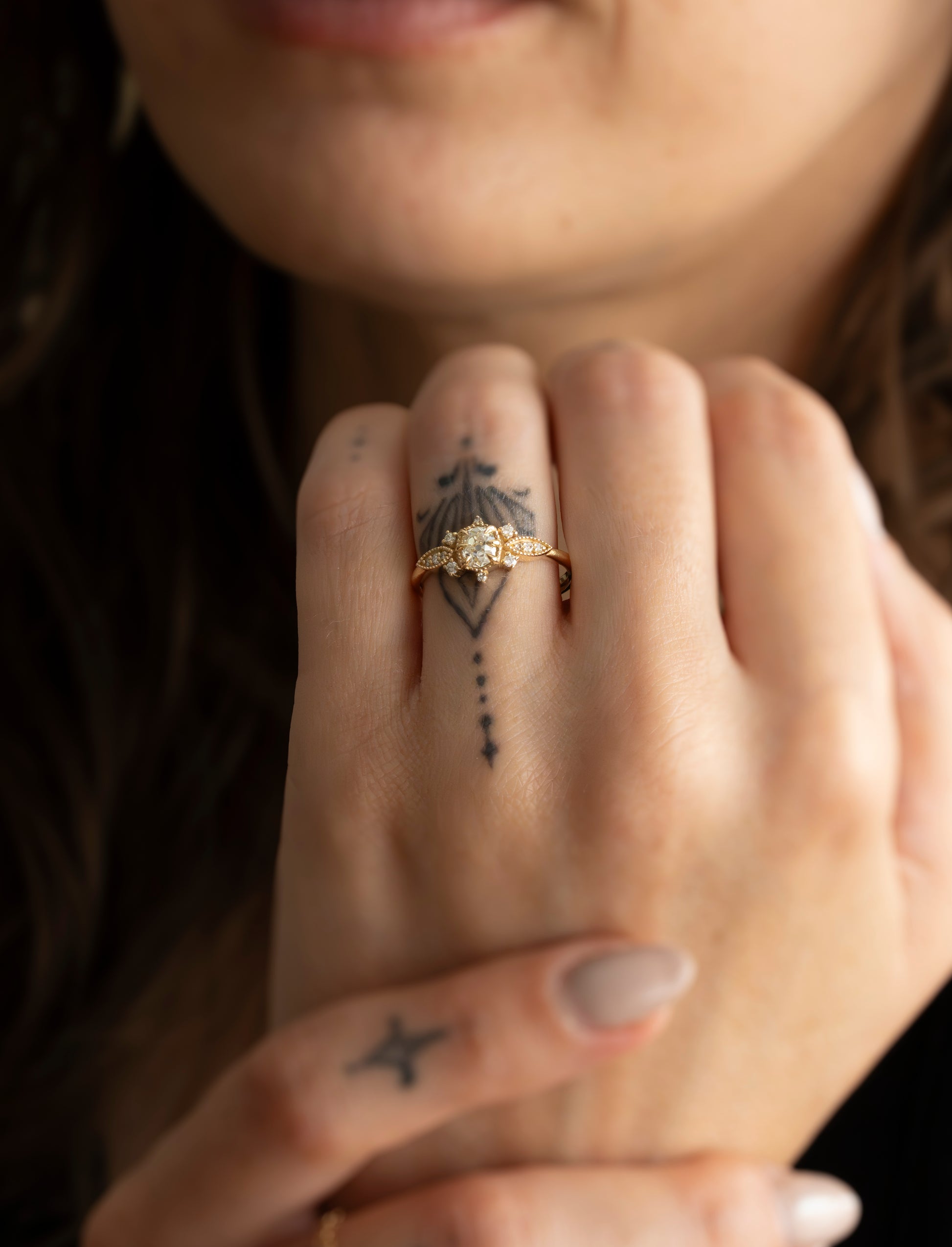 This ring feels like something found in an old velvet box — timeless, celestial, and impossibly romantic. Perfect for those drawn to old-world beauty and the kind of sparkle that hums rather than shouts.